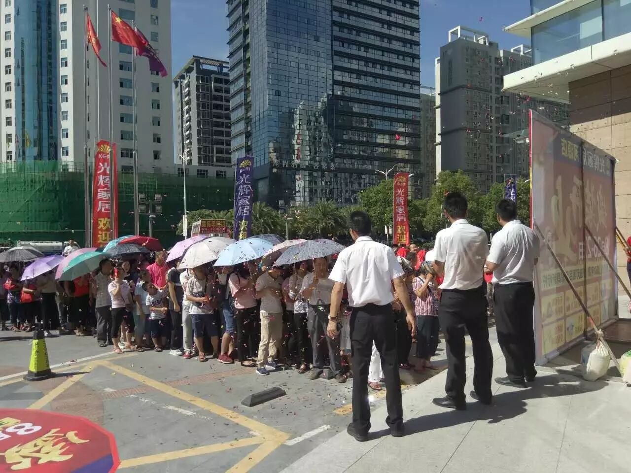 排队签到,进店即送好礼一份 营业时间还没到,顾客一大早已在门口排队等候,而中团动力&光辉家居的小伙伴们也早准备好迎接这群热情的顾客~